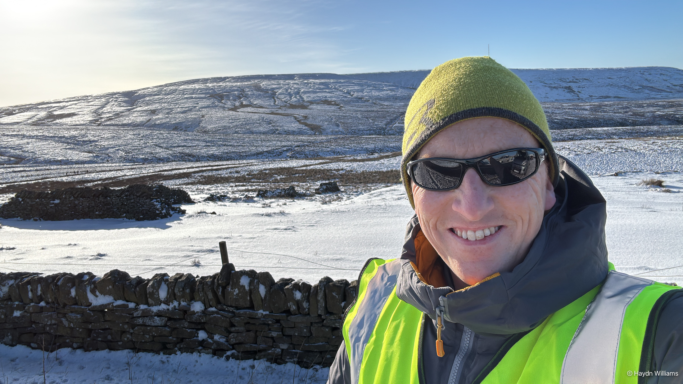 A night in Horton was followed by some of the team checking runners on Pen y Ghent. Chris L and I went to check Jack Scott as he went through the village before starting the Cam High Road. Given that he’d just gone over Fountains Fell and Pen y Ghent alone in the early hours in appalling weather, he was remarkably compos mentis and gave us a clear summary of his current position. I realise taking photos of the leaders is de rigueur in such circumstances, but I always feel like people must get sick of it (and I was concentrating quite hard on simply standing up, such was the prevalence of sheet ice across both pavement and road).