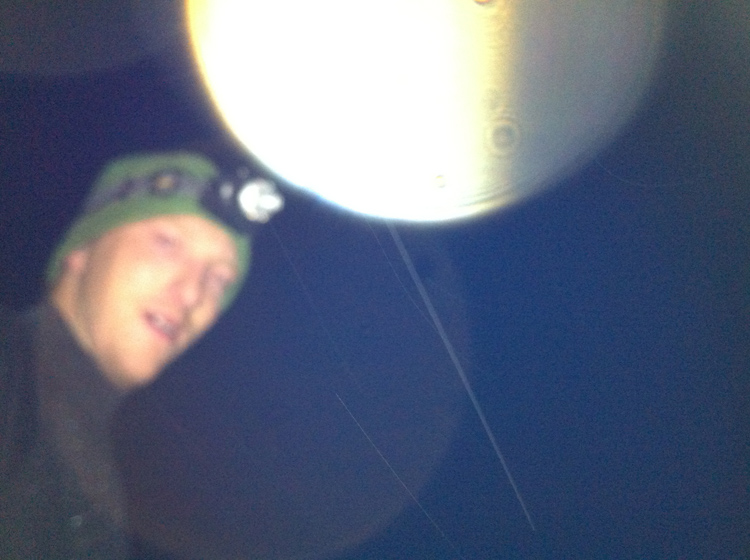 I set off from Pen-y-Pass, currently uninhabited whilst it undergoes a £1.3million refub and extension, and climbed the Miner’s Path under a blanket of low cloud. The full moon behind provided enough light for me to reach Llyn Llydaw without my head torch though, which sprang to life as I hit the button and broke off the surfaced path to head up the grassy flank of The Horns. Spots of rain blew across the torch beam, and by the time I was at the top of the ridge line I was in the cloud. A slippery decent to Bwlch y Moch was followed by a similarly slippery run down the death trap which is the Pyg Track in the rain when wearing Mudclaws.